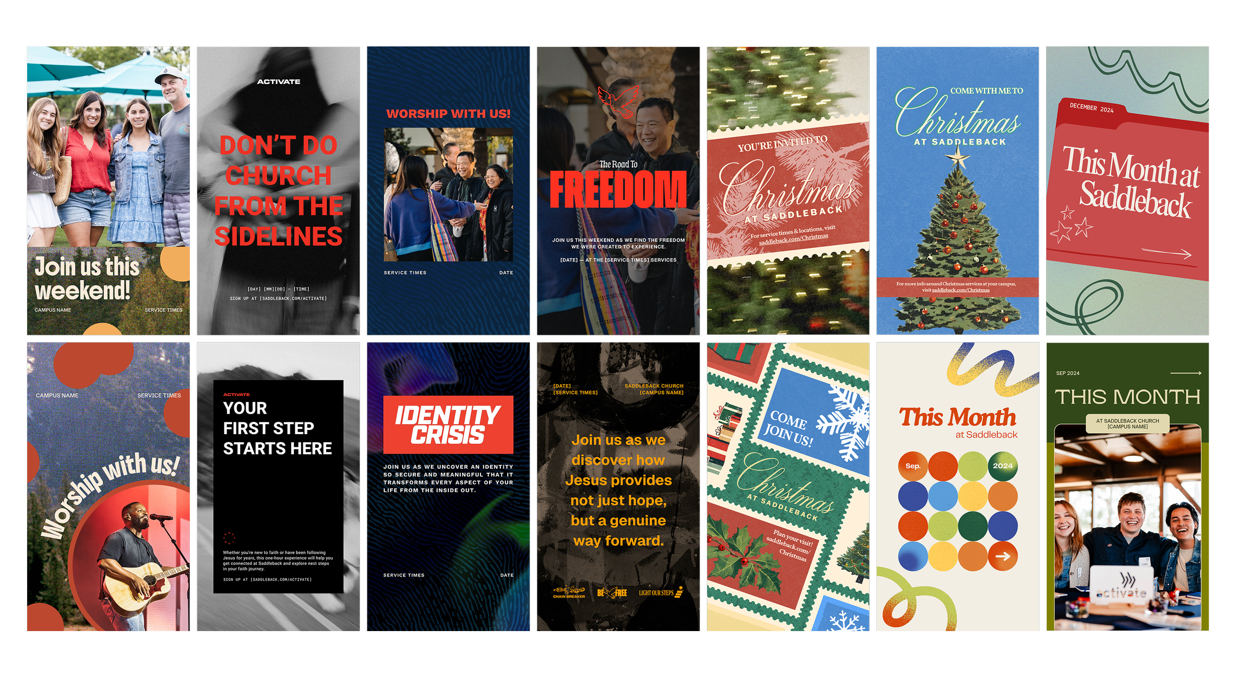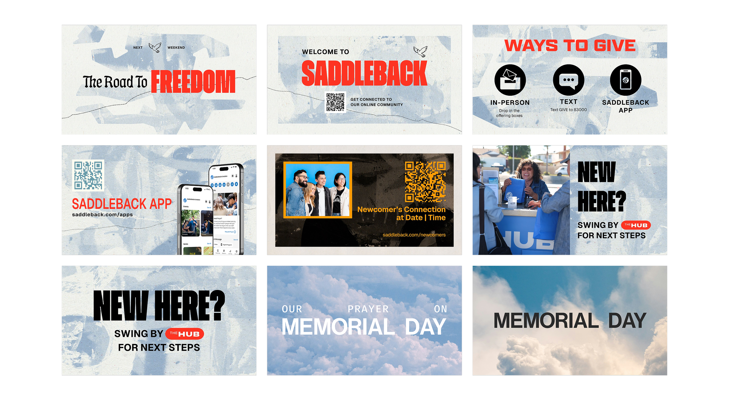 As a former intern and current contractor at Saddleback Church, I’ve had the opportunity to direct the brand identity development and asset production for a variety of campaigns.
